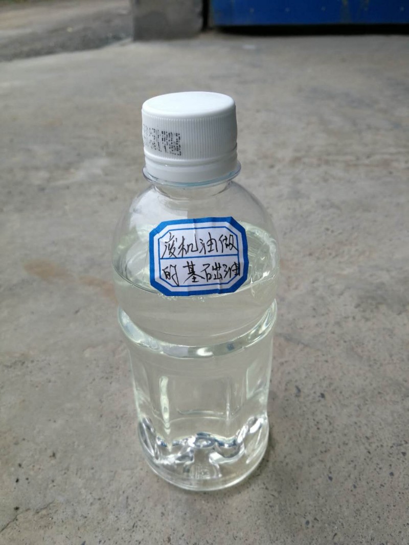 生产流程如下:第一步将各种废机油打入脱水、脱氢罐加热到150度左右脱水、脱氢来提高闪点;第二步油温降到80度时将油打入脱胶罐中加入脱胶剂、沉降剂搅拌30分钟后脱胶提高亮度;第三步沉降,第四步脱色;油品温度降到60度将油打入脱色罐中加高效脱色剂搅拌30分钟, 然后沉淀1小时(以客户所带油品为主),过滤机过滤即成基础油(处理一吨废机油做成啤酒色需要化工原料300元左右;做成接近水白色需要450元的化工原料;做成水白色需要800元左右的化工原料),出油率高达85%以上,指标完全达到国家再生基础油标准。然后调和成柴油。整个生产过程不冒烟、无异味、无噪音、无废水、无污染,完全达到国家安全环保要求。